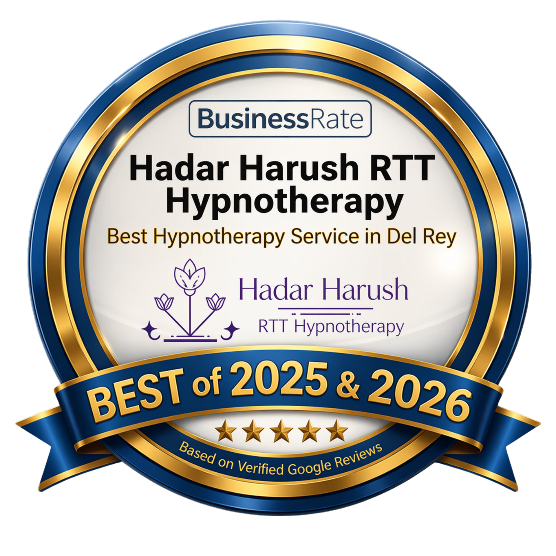 Hadar Harush RTT Hypnotherapy has been recognized as the "Best Hypnotherapy Service in Del Rey" for 2025 & 2026 by BusinessRate. This prestigious award is based on verified Google Reviews, highlighting the exceptional service and positive impact on clients.